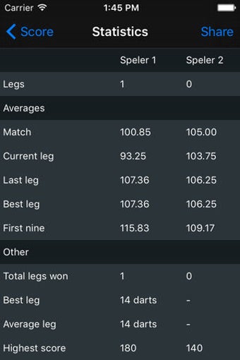 Darts Scoreboard X01 is beschikbaar voor iOS 12.1.2 of hoger. De huidige versie van het programma is 2.3, en je kunt het krijgen in het Engels, Duits en Nederlands.
